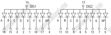 Каталог > Оптоэлектроника и индикация > Индикаторы светодиодные (сегментные дисплеи, матрицы, шкалы, светящиеся поля) > Цифровые и цифро-буквенные cветодиодные сегментные индикаторы (дисплеи) > 2-разрядные сегментные индикаторы > 2-разр. 0.56 дюйм. 7-сегм. 5265 серия > BJ5265BY