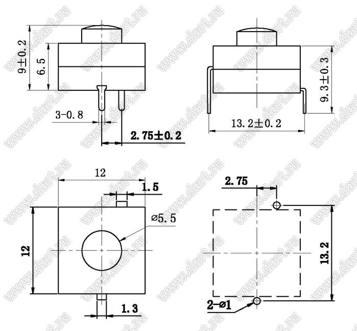 Каталог > Электронные компоненты, радиодетали > Переключатели, кнопки > Переключатели кнопочные (PUSH, кнопки) > KAN серия > KAN8-202