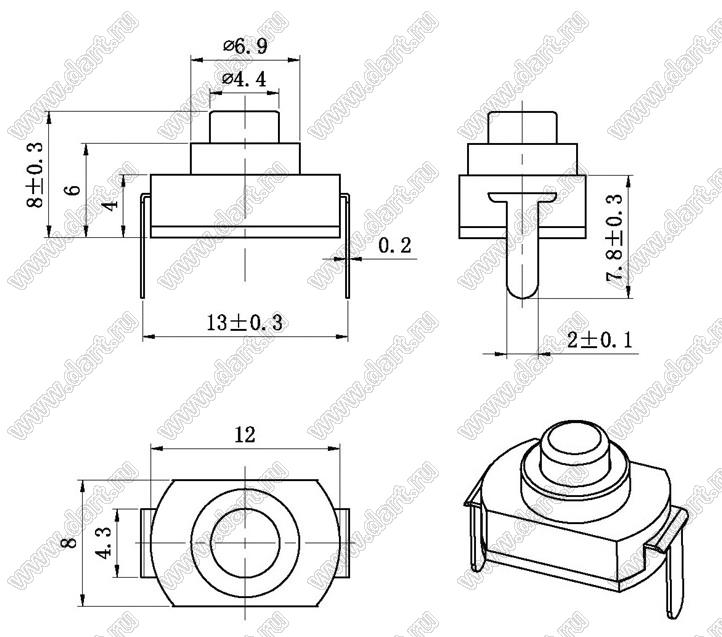 Каталог > Электронные компоненты, радиодетали > Переключатели, кнопки > Переключатели кнопочные (PUSH, кнопки) > KAN серия > KAN8-001