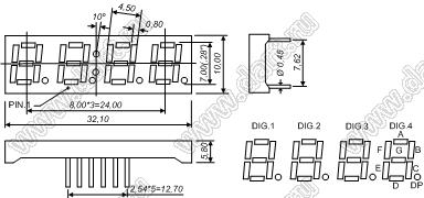 Каталог > Оптоэлектроника и индикация > Индикаторы светодиодные (сегментные дисплеи, матрицы, шкалы, светящиеся поля) > Цифровые и цифро-буквенные cветодиодные сегментные индикаторы (дисплеи) > 4-разрядные сегментные индикаторы > 4-разр. 0.28 дюйм. 7-сегм. 2481 серия > BJ2481BE