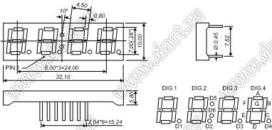 Каталог > Оптоэлектроника и индикация > Индикаторы светодиодные (сегментные дисплеи, матрицы, шкалы, светящиеся поля) > Цифровые и цифро-буквенные cветодиодные сегментные индикаторы (дисплеи) > 4-разрядные сегментные индикаторы > 4-разр. 0.28 дюйм. 7-сегм. 2481 серия > BJ2481CG