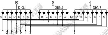 Каталог > Оптоэлектроника и индикация > Индикаторы светодиодные (сегментные дисплеи, матрицы, шкалы, светящиеся поля) > Цифровые и цифро-буквенные cветодиодные сегментные индикаторы (дисплеи) > 3-разрядные 7-сегментные индикаторы > 3-разр. 0.8 дюйм. 7-сегм. 30802 серия > BJ30802IB