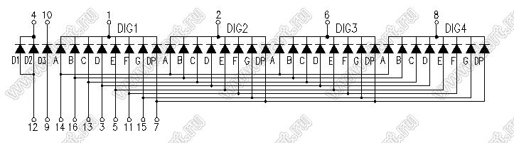 Каталог > Оптоэлектроника и индикация > Индикаторы светодиодные (сегментные дисплеи, матрицы, шкалы, светящиеся поля) > Цифровые и цифро-буквенные cветодиодные сегментные индикаторы (дисплеи) > 4-разрядные сегментные индикаторы > 4-разр. 0.39 дюйм. 7-сегм. 3494 серия > BJ3494AY