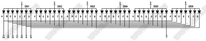 Каталог > Оптоэлектроника и индикация > Индикаторы светодиодные (сегментные дисплеи, матрицы, шкалы, светящиеся поля) > Цифровые и цифро-буквенные cветодиодные сегментные индикаторы (дисплеи) > 6-разрядные 7-сегментные индикаторы > 6-разр. 0.36 дюйм. 7-сегм. 3663 серия > BJ3663BY