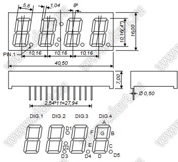 Каталог > Оптоэлектроника и индикация > Индикаторы светодиодные (сегментные дисплеи, матрицы, шкалы, светящиеся поля) > Цифровые и цифро-буквенные cветодиодные сегментные индикаторы (дисплеи) > 4-разрядные сегментные индикаторы > 4-разр. 0.4 дюйм. 7-сегм. 4401 серия > BJ4401CE