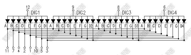 Каталог > Оптоэлектроника и индикация > Индикаторы светодиодные (сегментные дисплеи, матрицы, шкалы, светящиеся поля) > Цифровые и цифро-буквенные cветодиодные сегментные индикаторы (дисплеи) > 4-разрядные сегментные индикаторы > 4-разр. 0.4 дюйм. 7-сегм. 4405 серия > BJ4405DG