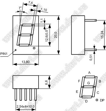 Каталог > Оптоэлектроника и индикация > Индикаторы светодиодные (сегментные дисплеи, матрицы, шкалы, светящиеся поля) > Цифровые и цифро-буквенные cветодиодные сегментные индикаторы (дисплеи) > 1 разрядные сегментные индикаторы > 1-разр. 0.5 дюйм. 7-сегм. 5107 серия > BJ5107BB