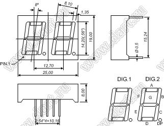 Каталог > Оптоэлектроника и индикация > Индикаторы светодиодные (сегментные дисплеи, матрицы, шкалы, светящиеся поля) > Цифровые и цифро-буквенные cветодиодные сегментные индикаторы (дисплеи) > 2-разрядные сегментные индикаторы > 2-разр. 0.56 дюйм. 7-сегм. 5261 серия > BJ5261DB