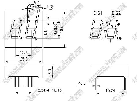 Каталог > Оптоэлектроника и индикация > Индикаторы светодиодные (сегментные дисплеи, матрицы, шкалы, светящиеся поля) > Цифровые и цифро-буквенные cветодиодные сегментные индикаторы (дисплеи) > 2-разрядные сегментные индикаторы > 2-разр. 0.56 дюйм. 7-сегм. 5262 серия > BJ5262AE