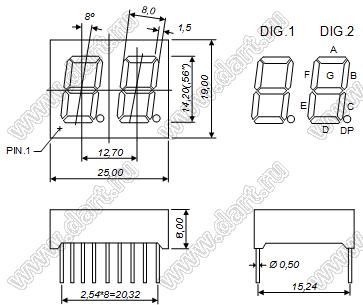 Каталог > Оптоэлектроника и индикация > Индикаторы светодиодные (сегментные дисплеи, матрицы, шкалы, светящиеся поля) > Цифровые и цифро-буквенные cветодиодные сегментные индикаторы (дисплеи) > 2-разрядные сегментные индикаторы > 2-разр. 0.56 дюйм. 7-сегм. 5264 серия > BJ5264AE