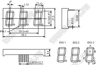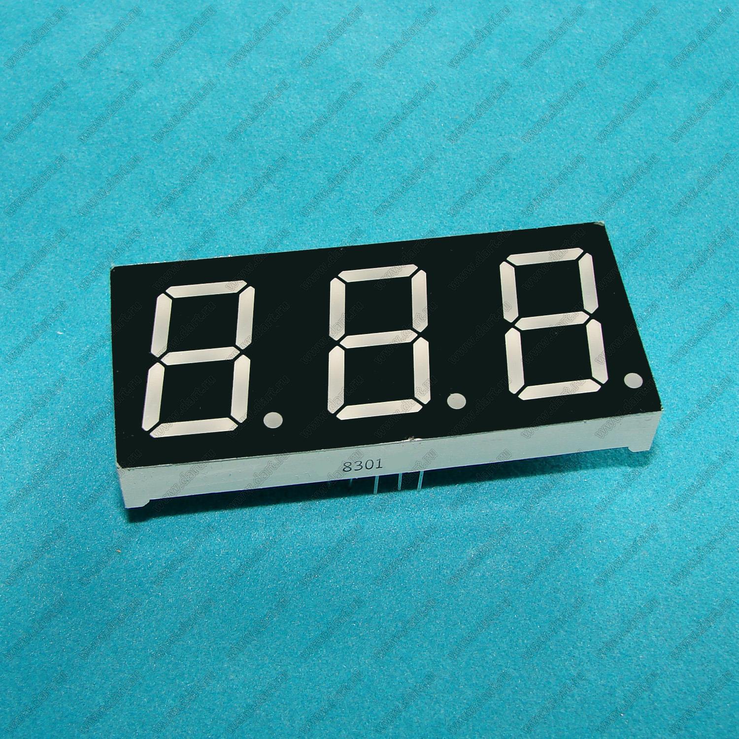 Каталог > Оптоэлектроника и индикация > Индикаторы светодиодные (сегментные дисплеи, матрицы, шкалы, светящиеся поля) > Цифровые и цифро-буквенные cветодиодные сегментные индикаторы (дисплеи) > 3-разрядные 7-сегментные индикаторы > 3-разр. 0.8 дюйм. 7-сегм. 8301 серия > BJ8301BG