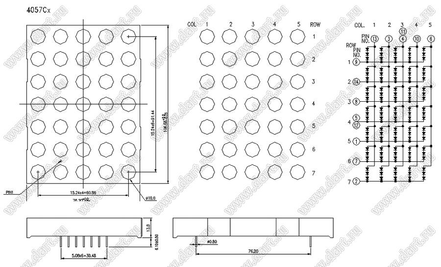 Каталог > Оптоэлектроника и индикация > Индикаторы светодиодные (сегментные дисплеи, матрицы, шкалы, светящиеся поля) > Точечные cветодиодные матрицы > 4,0" (4x4) точечная серия > BJ4057CH