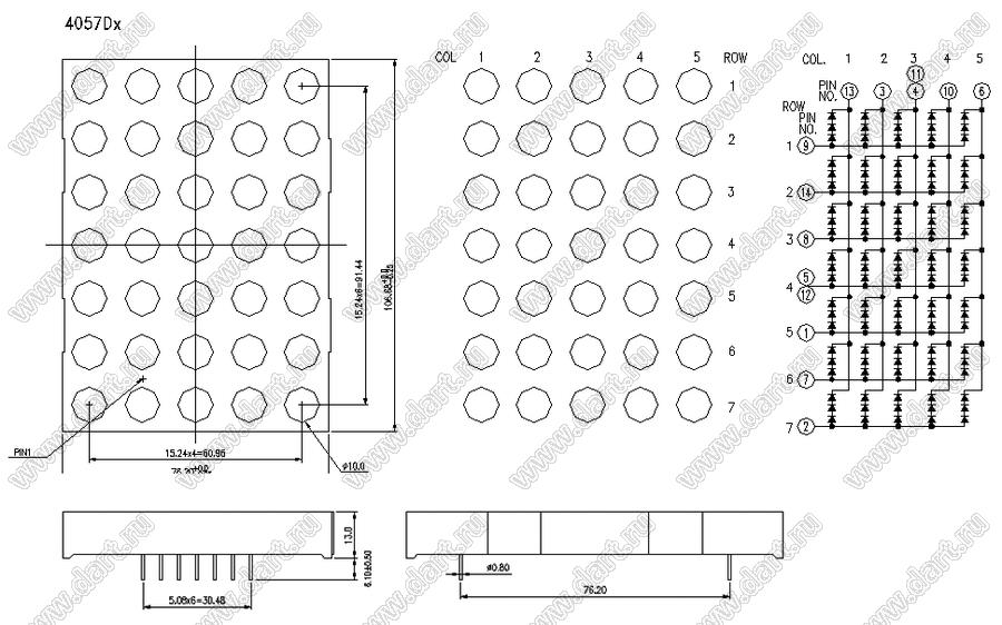 Каталог > Оптоэлектроника и индикация > Индикаторы светодиодные (сегментные дисплеи, матрицы, шкалы, светящиеся поля) > Точечные cветодиодные матрицы > 4,0" (4x4) точечная серия > BJ4057DE