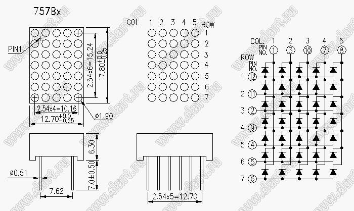Каталог > Оптоэлектроника и индикация > Индикаторы светодиодные (сегментные дисплеи, матрицы, шкалы, светящиеся поля) > Точечные cветодиодные матрицы > 0,7" (8x8) точечная серия > BJ757BH