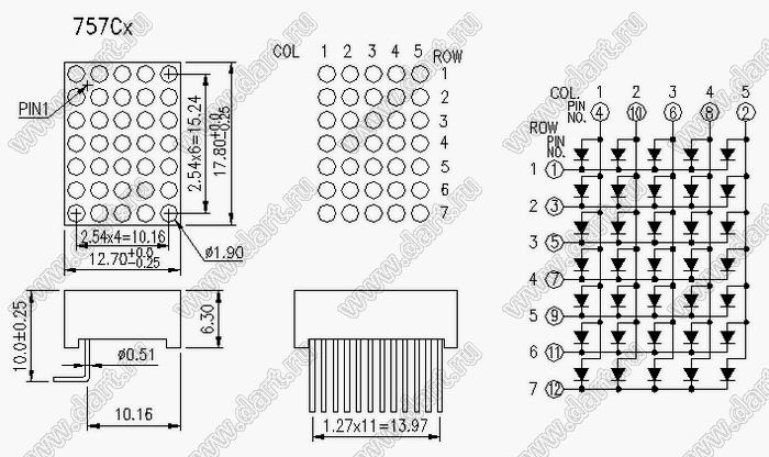 Каталог > Оптоэлектроника и индикация > Индикаторы светодиодные (сегментные дисплеи, матрицы, шкалы, светящиеся поля) > Точечные cветодиодные матрицы > 0,7" (8x8) точечная серия > BJ757CH
