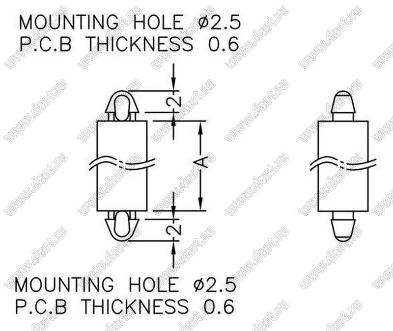 Каталог > Фурнитура для электронных устройств > Фиксаторы плат, стойки межплатные > Фиксаторы под круглое отверстие > Фиксаторы с двумя защелками > Прочие > MADA-18S