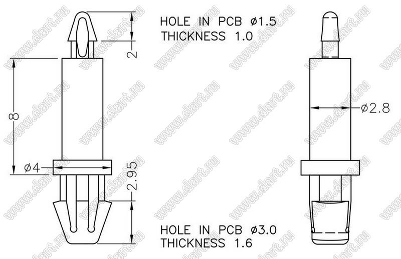 Каталог > Фурнитура для электронных устройств > Фиксаторы плат, стойки межплатные > Фиксаторы под круглое отверстие > Фиксаторы с двумя защелками > Прочие > LCMB-8