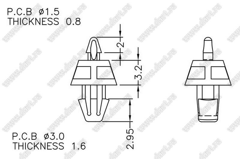 Каталог > Фурнитура для электронных устройств > Фиксаторы плат, стойки межплатные > Фиксаторы под круглое отверстие > Фиксаторы с двумя защелками > Прочие > MAEB-3.2