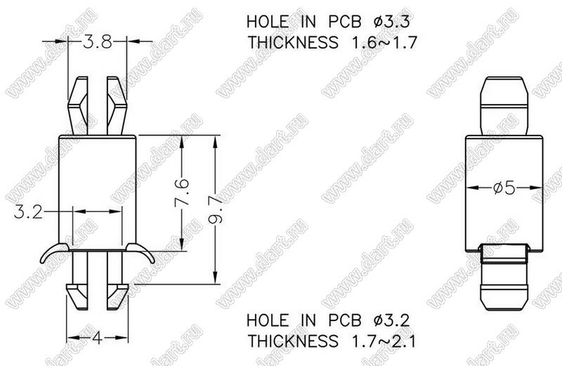 Каталог > Фурнитура для электронных устройств > Фиксаторы плат, стойки межплатные > Фиксаторы под круглое отверстие > Фиксаторы с двумя защелками > Прочие > MSPH-7.5