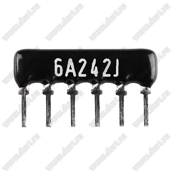 Каталог > Электронные компоненты, радиодетали > Резисторы > Резисторы постоянные > Резисторы DIP (выводные) > Резисторы SIP (сборки резисторные) > Тип A сборки резисторные > схема 6P5R > SIP 6P5R-A2K4J 5% (6A242J)