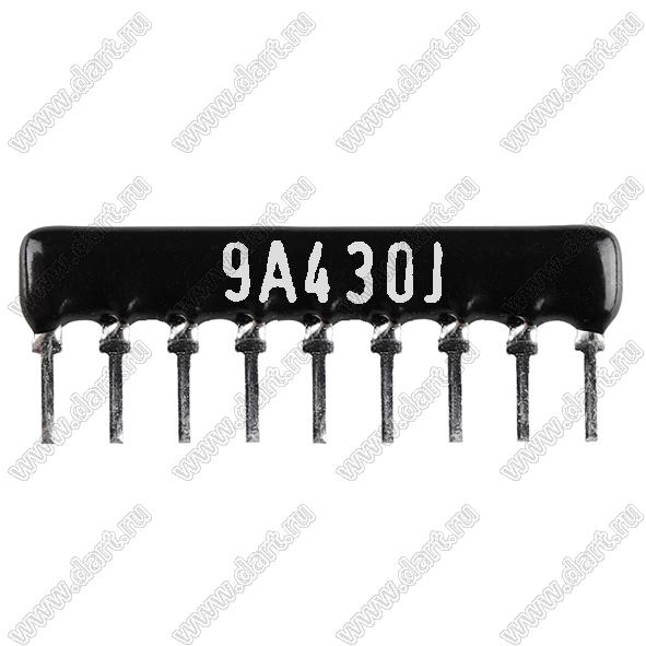 Каталог > Электронные компоненты, радиодетали > Резисторы > Резисторы постоянные > Резисторы DIP (выводные) > Резисторы SIP (сборки резисторные) > Тип A сборки резисторные > схема 9P8R > SIP 9P8R-A43RJ 5% (9A430J)