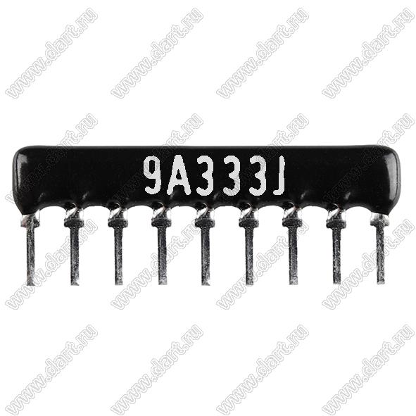 Каталог > Электронные компоненты, радиодетали > Резисторы > Резисторы постоянные > Резисторы DIP (выводные) > Резисторы SIP (сборки резисторные) > Тип A сборки резисторные > схема 9P8R > SIP 9P8R-A33KJ 5% (9A333J)