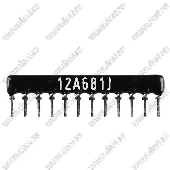 Каталог > Электронные компоненты, радиодетали > Резисторы > Резисторы постоянные > Резисторы DIP (выводные) > Резисторы SIP (сборки резисторные) > Тип A сборки резисторные > схема 12P11R > SIP 12P11R-A680RJ 5% (12A681J)