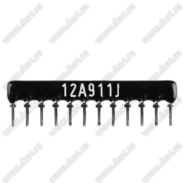 Каталог > Электронные компоненты, радиодетали > Резисторы > Резисторы постоянные > Резисторы DIP (выводные) > Резисторы SIP (сборки резисторные) > Тип A сборки резисторные > схема 12P11R > SIP 12P11R-A910RJ 5% (12A911J)