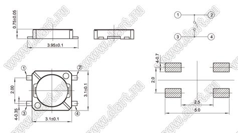 Каталог > Электронные компоненты, радиодетали > Переключатели, кнопки > Переключатели тактовые (TACT, тактовые кнопки) > Тактовые кнопки SMD (для поверхностного монтажа) > 3,1x3,1 мм > THAF18 > THAF18