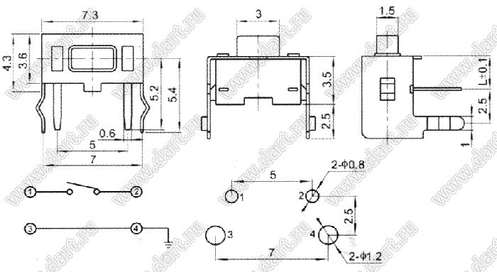 Каталог > Электронные компоненты, радиодетали > Переключатели, кнопки > Переключатели тактовые (TACT, тактовые кнопки) > Тактовые кнопки прямые для монтажа в отверстия платы > Прочее > THBP07-3.15