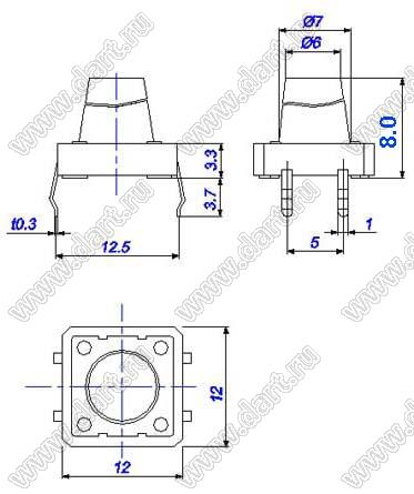 Каталог > Электронные компоненты, радиодетали > Переключатели, кнопки > Переключатели тактовые (TACT, тактовые кнопки) > Тактовые кнопки прямые для монтажа в отверстия платы > 12,0x12,0 мм > TS12xx серия > TS1280