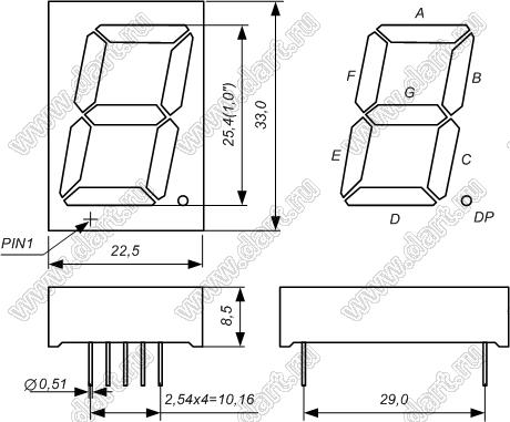 Каталог > Оптоэлектроника и индикация > Индикаторы светодиодные (сегментные дисплеи, матрицы, шкалы, светящиеся поля) > Цифровые и цифро-буквенные cветодиодные сегментные индикаторы (дисплеи) > 1 разрядные сегментные индикаторы > 1-разр. 1 дюйм. 7-сегм. 10102 серия > BJ10102FHG