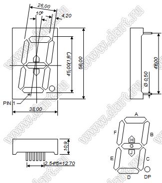 Каталог > Оптоэлектроника и индикация > Индикаторы светодиодные (сегментные дисплеи, матрицы, шкалы, светящиеся поля) > Цифровые и цифро-буквенные cветодиодные сегментные индикаторы (дисплеи) > 1 разрядные сегментные индикаторы > 1-разр. 1.8 дюйм. 9-сегм. 18103 серия > BJ18103CYG