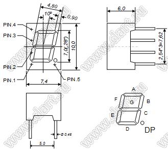 Каталог > Оптоэлектроника и индикация > Индикаторы светодиодные (сегментные дисплеи, матрицы, шкалы, светящиеся поля) > Цифровые и цифро-буквенные cветодиодные сегментные индикаторы (дисплеи) > 1 разрядные сегментные индикаторы > 1-разр. 0.28 дюйм. 7-сегм. 2181 серия > BJ2181DE