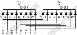 Каталог > Оптоэлектроника и индикация > Индикаторы светодиодные (сегментные дисплеи, матрицы, шкалы, светящиеся поля) > Цифровые и цифро-буквенные cветодиодные сегментные индикаторы (дисплеи) > 2-разрядные сегментные индикаторы > 2-разр. 0.39 дюйм. 7-сегм. 3291 серия > BJ3291AB