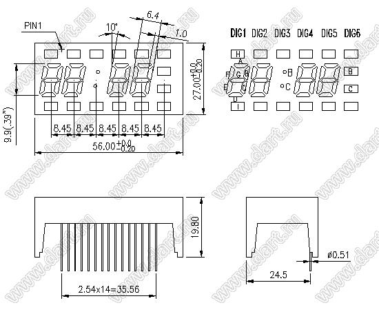 Каталог > Оптоэлектроника и индикация > Индикаторы светодиодные (сегментные дисплеи, матрицы, шкалы, светящиеся поля) > Цифровые и цифро-буквенные cветодиодные сегментные индикаторы (дисплеи) > 4-разрядные сегментные индикаторы > 4-разр. 0.39 дюйм. 7-сегм. 3495 серия > BJ3495BY