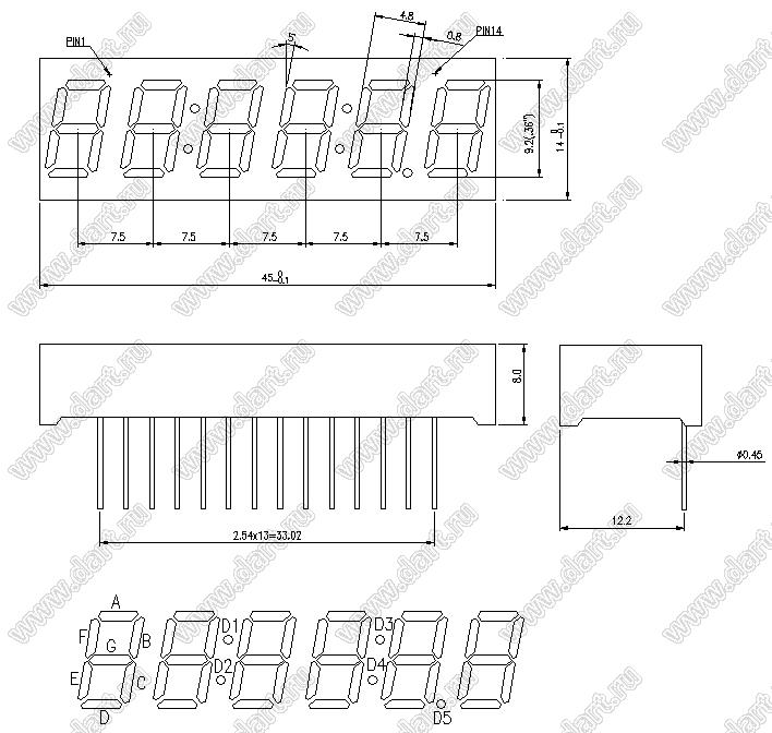 Каталог > Оптоэлектроника и индикация > Индикаторы светодиодные (сегментные дисплеи, матрицы, шкалы, светящиеся поля) > Цифровые и цифро-буквенные cветодиодные сегментные индикаторы (дисплеи) > 6-разрядные 7-сегментные индикаторы > 6-разр. 0.36 дюйм. 7-сегм. 3663 серия > BJ3663DY