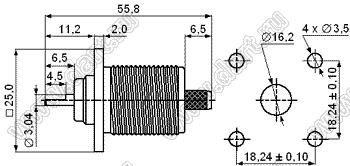 Каталог > Электронные компоненты, радиодетали > Разъёмы (соединители, переходники) > Разъемы высокочастотные коаксиальные > N серия > JC3.650.225 (N-CF-3-D)