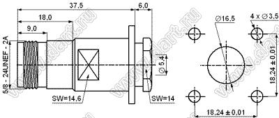 Каталог > Электронные компоненты, радиодетали > Разъёмы (соединители, переходники) > Разъемы высокочастотные коаксиальные > N серия > JC3.660.209 (N-KF3-1)
