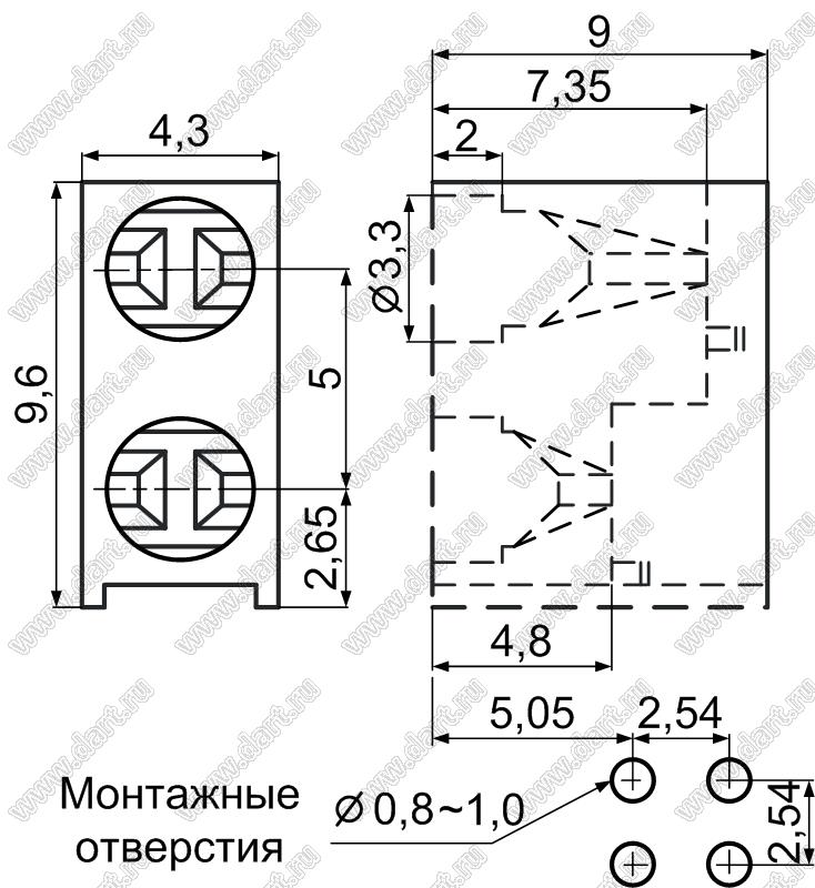 Каталог > Фурнитура для электронных устройств > Держатели и изоляторы компонентов > Держатели светодиодов > Держатели светодиодов угловые на плату > 2 x d=3,0мм > LED-306(B) (CYX LED-2F)