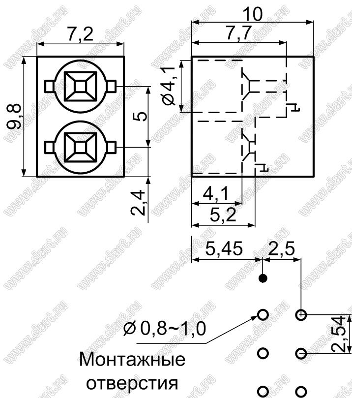Каталог > Фурнитура для электронных устройств > Держатели и изоляторы компонентов > Держатели светодиодов > Держатели светодиодов угловые на плату > 2 x d=3,0мм > LED-310