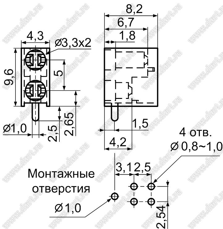 Каталог > Фурнитура для электронных устройств > Держатели и изоляторы компонентов > Держатели светодиодов > Держатели светодиодов угловые на плату > 2 x d=3,0мм > LEK-307