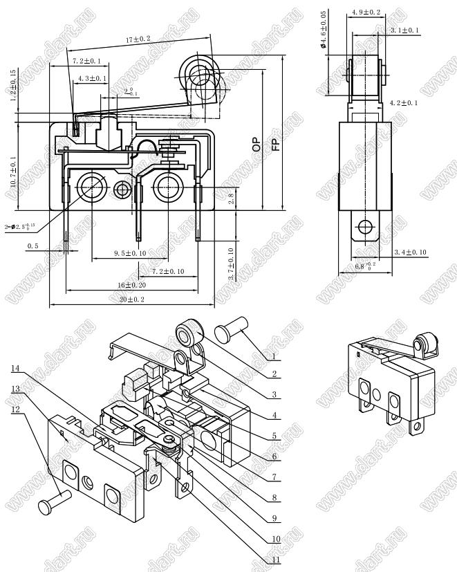 Каталог > Электронные компоненты, радиодетали > Переключатели, кнопки > Переключатели концевые/микропереключатели (MICRO) > SM (KW11-3Z-5) > KW11-3Z-51AC1B (SM5-05N)