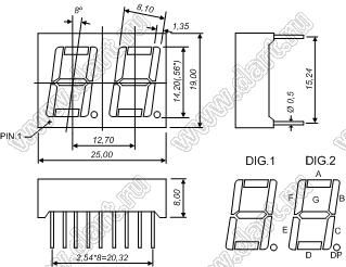 Каталог > Оптоэлектроника и индикация > Индикаторы светодиодные (сегментные дисплеи, матрицы, шкалы, светящиеся поля) > Цифровые и цифро-буквенные cветодиодные сегментные индикаторы (дисплеи) > 2-разрядные сегментные индикаторы > 2-разр. 0.56 дюйм. 7-сегм. 5261 серия > BJ5261AH