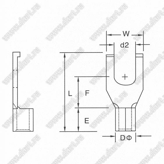 Каталог > Фурнитура для электронных устройств > Наконечники кабельные и клеммы FASTON россыпью в пакетах > Наконечники кабельные неизолированные россыпью в пакетах > FSNB серия: вилкообразные с зацепами, неизолированные > FSNB5.5-4