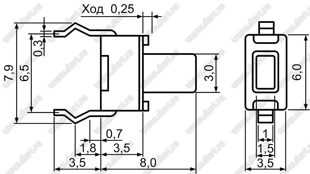 Каталог > Электронные компоненты, радиодетали > Переключатели, кнопки > Переключатели тактовые (TACT, тактовые кнопки) > Тактовые кнопки прямые для монтажа в отверстия платы > 3,5x6,0 мм > TC-0122-X