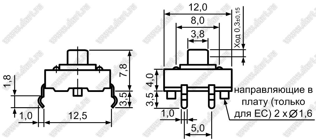 Каталог > Электронные компоненты, радиодетали > Переключатели, кнопки > Переключатели тактовые (TACT, тактовые кнопки) > Тактовые кнопки прямые для монтажа в отверстия платы > 12,0x12,0 мм > TC-12 серия > TC-12EC-X