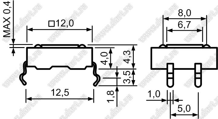 Кнопка тактовая; 12x12x4,3мм