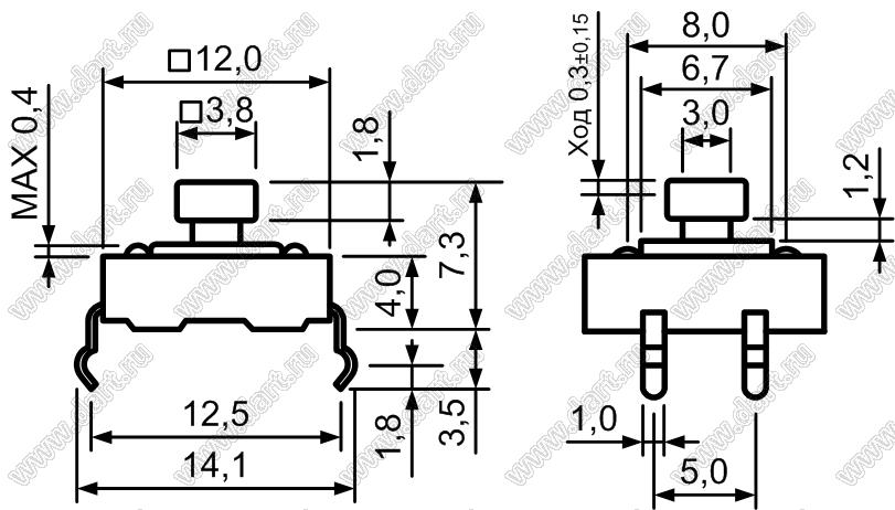 Каталог > Электронные компоненты, радиодетали > Переключатели, кнопки > Переключатели тактовые (TACT, тактовые кнопки) > Тактовые кнопки прямые для монтажа в отверстия платы > 12,0x12,0 мм > TC-12 серия > TC-12XT-X (TSF1273-250AH, TS-040, DTS-24N)