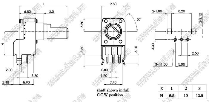 Каталог > Электронные компоненты, радиодетали > Резисторы > Резисторы переменные (потенциометры) > Роторные > 9 мм > R0902N-ZA1-B503